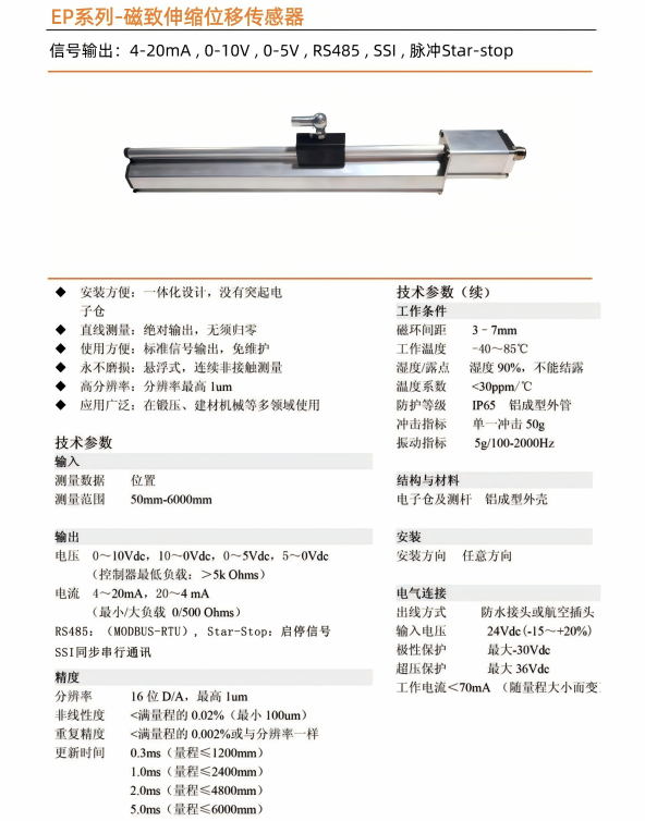 EPM滑块式磁致伸缩位移传感器油缸外置位移传感器高精度位移测量