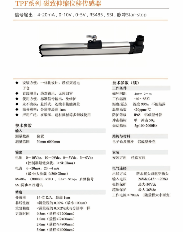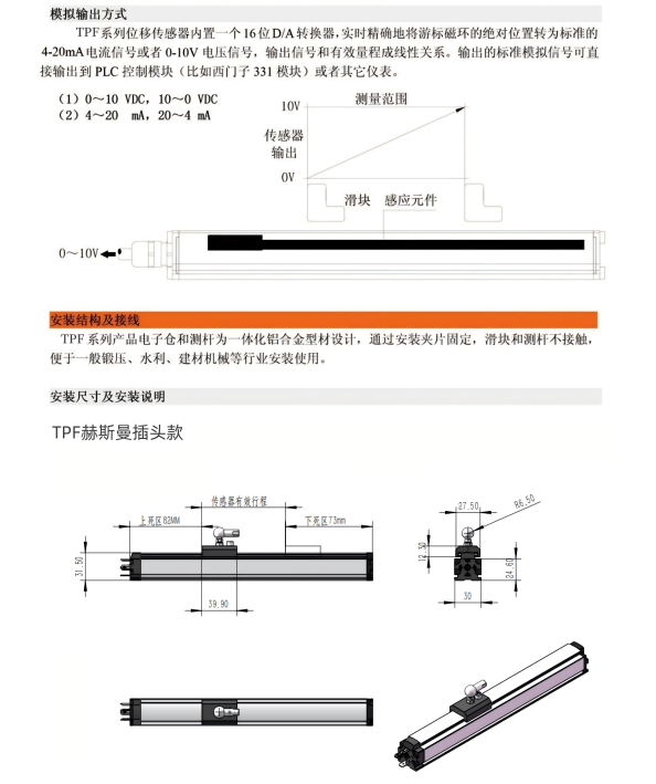 油缸外置位移传感器TPF滑块式磁致伸缩位移传感器注塑机传感器