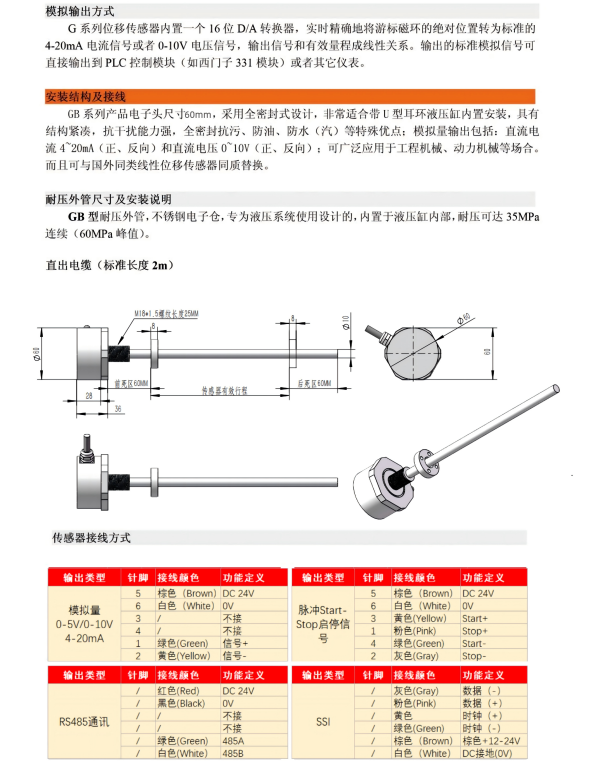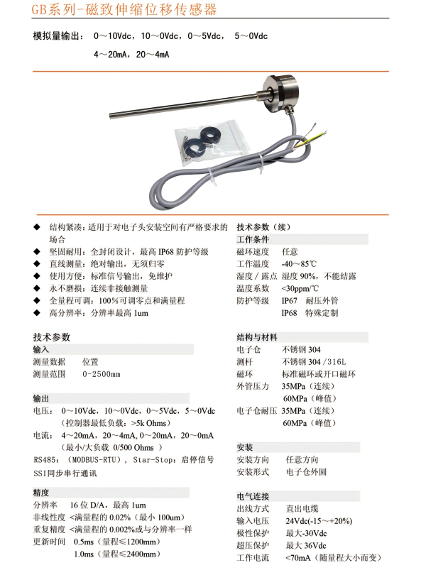 GBT磁致伸缩位移传感器油缸内置位移传感器液压油缸行程传感器