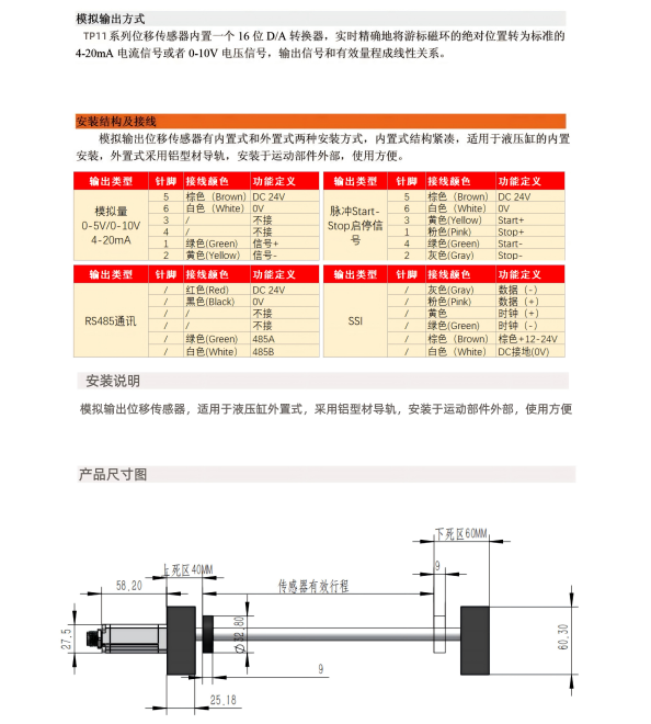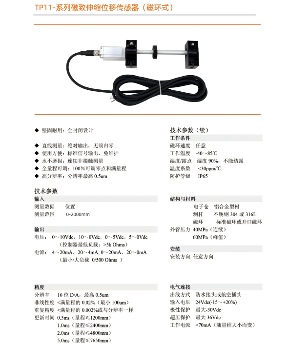 TP11磁致伸缩位移传感器磁环式直线位移传感器外置行程位移传感器