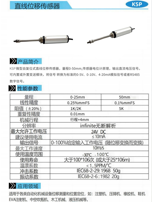KSP微型自复位直线位移传感器 注塑机电子尺 高精度电阻尺