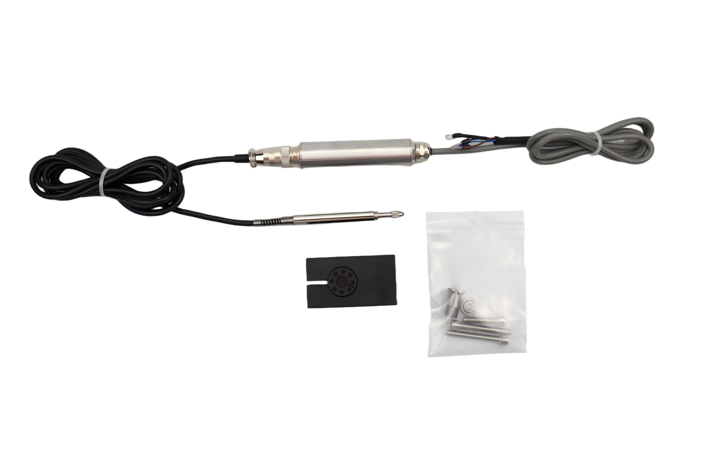 FS-D1短款LVDT位移传感器差动变压式高精度 内部采用日本高精密微型滚珠轴承结构,精度更高体积更小,产品性能大幅提升。传感器12-24VDC供电,测头采用高硬度的耐材料氧化硅,电子电路密封在304不锈钢金属管内,可以在潮、粉尘等恶劣环境长期稳定工作。输出标准的可被计算机或PLC使用的0-5V、0-10V电压信号;4-20mA电流信号;或者RS485数字信号: